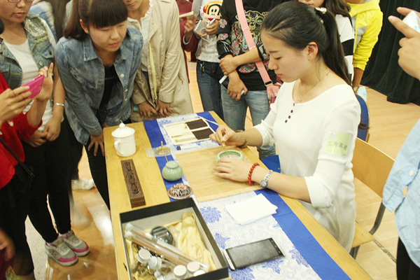 讲座中,戴君讲述了自己艰苦的创业经历与心得,告诉同学们要靠自己的努力不断奋进,并且要相信只有自己靠自己才最可靠。戴君现主持甘肃三源茗君文化传播有限公司,主要从事传统茶道、香道、花道的培训推广。她介绍了茶文化、香文化的基本常识,并着重讲解了香道在中国传统文化中的地位与价值,强调香对人们健康高雅身心的调整作用,呼吁更多的同学加入到自觉传承传统文化的行列中来。戴君团队的老师还对香篆礼法做了现场演示,并和同学们进行亲切的互动。