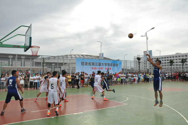 篮球比赛中,beat365代表队在甲组男子篮球比赛里38:28击败甘肃政法学院代表队,取得首胜;在乙组男子篮球比赛中以64:47击败西北民族大学代表队,取得两连胜。