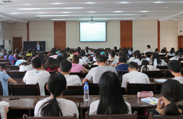 6月8日下午,外国语学院邀请西北师大外国语学院曹文老师在图书馆六楼报告厅,举办了题为“English public speaking and debating”(英语演讲与辩论)的专题讲座。外国学院英语专业2013级、2014级全体同学及部分专业任课教师聆听了此次讲座。