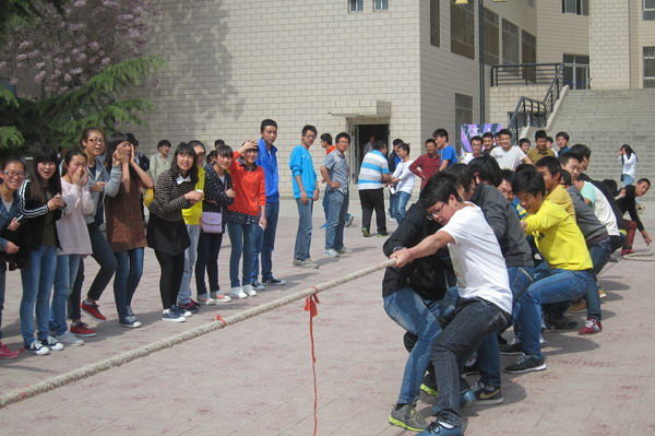 为增强大学生体质,响应共青团中央、教育部等四部门倡导的广泛开展大学生“走下网络、走出宿舍、走向操场”主题群众性课外体育锻炼活动号召,4月17日,培黎工程技术学院在培黎校区何克广场举办“凝心聚力”拔河比赛,300余名同学参加了比赛。通过比拼,最终焊接132班获得冠军,电信133班获亚军,焊接131班获季军,电信141班获优秀组织奖,焊接141班获精神文明奖,交通131、交通132、机制141、物理141、能源141获优胜奖。