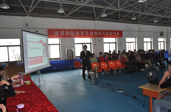 为了进一步激发体育学院学生对体育保健理论知识与操作技能学习的兴趣和积极性,强化对专业课程知识的理解和掌握,提高学生的动手实践能力。2014年12月26日,体育学院举办了第二届体育保健知识与技能操作大赛,来自学院的11支代表队参加了比赛。