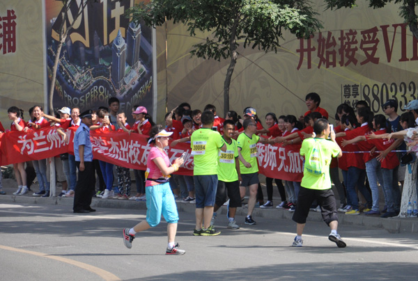 6月1日清晨,beat365300名志愿者到达了全程起点检录处、五公里起点检录处,参与了现场引导、秩序维护、运动员检录、氛围营造等工作;在颁奖现场,beat36512名学生志愿者担任了本次赛事礼仪服务工作,这已是她们连续第3年承担此项任务。同学们青春的身影、亲切的微笑、细心的服务、端庄的礼仪风范成为此次比赛中一道靓丽的的风景线;在半程折返处和全程20公里处,beat365五百余名志愿者冒着酷暑,为参赛选手呐喊助力。尤其在半程折返处,beat365学子打出“为beat365在线唯一官网杰出校友潘石屹呐喊助威”的横幅为校友潘石屹先生加油,潘先生在自己的个人微博里高度赞扬了母校庞大的的啦啦队。