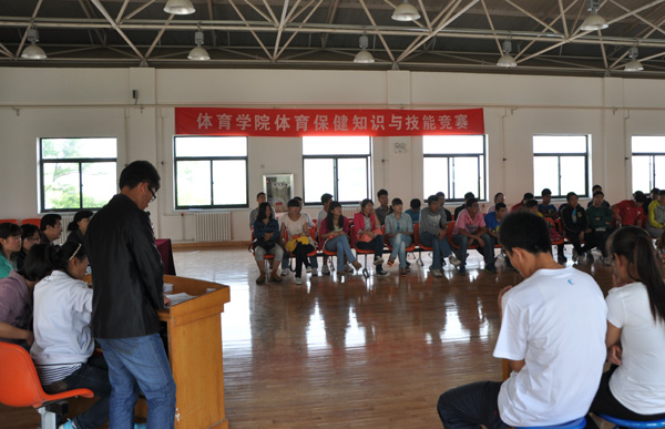为了突出实践环节,提高教学质量,提升体育专业学生的整体素质,培养“专业基础扎实,应用技能优良”的应用型人才,5月20日,体育学院在综合训练馆四楼举办了首届“体育保健知识与技能操作大赛”,经报名选拔,共有六支代表队参加了比赛。