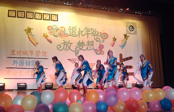 6月25日晚,外国语学院在培黎校区大学生活动中心举办了2013届毕欢送业生文艺演出。整台演出节目形式多样,精彩纷呈,高潮迭起,掌声和欢呼声不断,丰富多彩的艺术形式表达了在校同学对毕业生的深情祝福。部分毕业生也纷纷登台献演,表达对学校的依恋,对老师的感谢之情。歌曲《向往神鹰》把整个演出推向了高潮,祝愿每一位毕业生像雄鹰展翅高翔;12级同学表演的诗朗诵《属于你的我的毕业季》深深感动了在场的每一位观众;情景剧《致青春》语言诙谐幽默,形式生动活泼,内容贴近学生生活,不时赢得现场观众的热烈掌声;手语操《祝你一路顺风》表达了低年级同学对毕业生的深深祝福。大合唱《放心去飞》拉下了整场晚会的序幕,祝福毕业生带着知识,携手梦想,去飞向属于自己的地方。