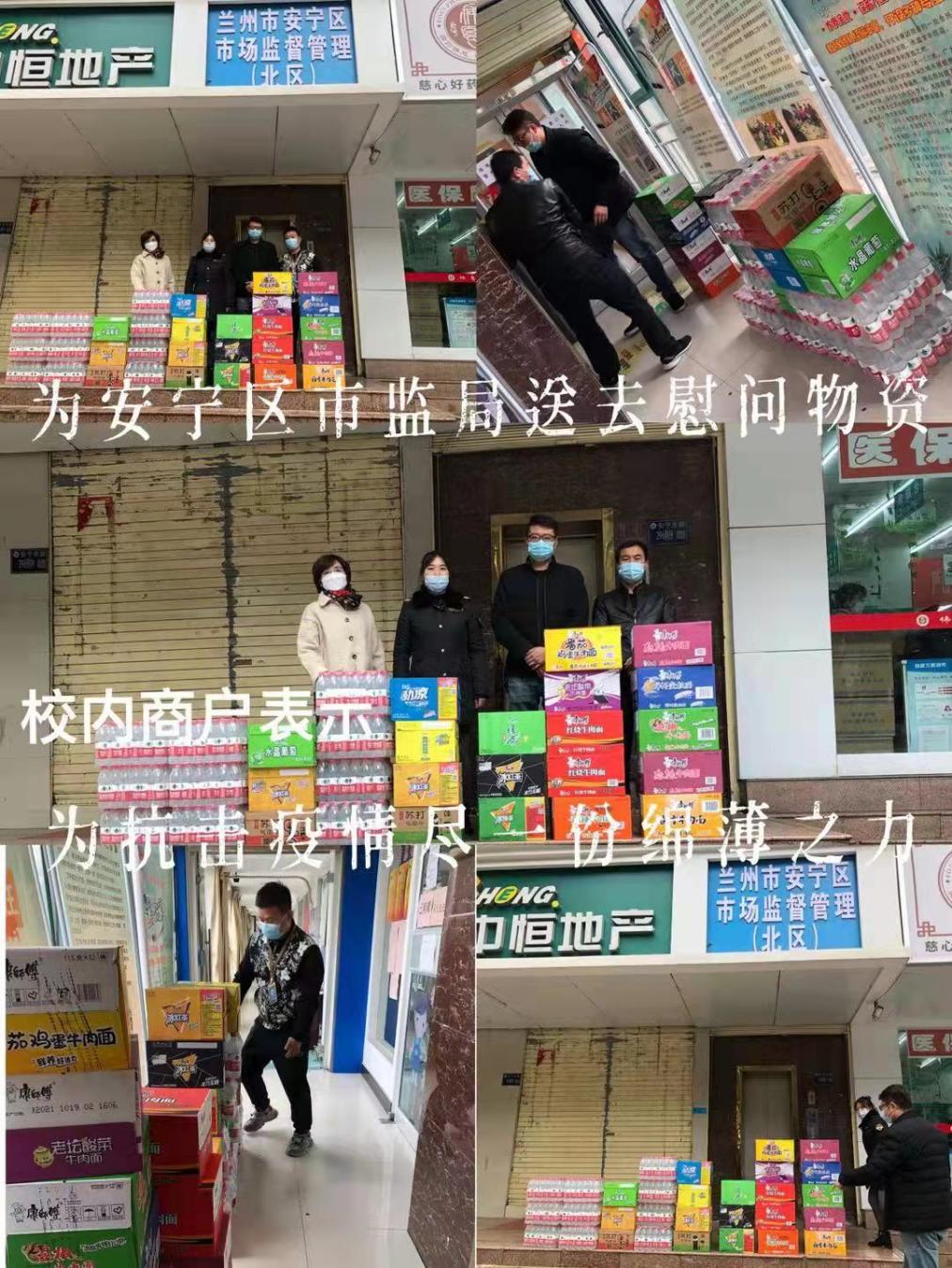 学校商户们积极向安宁区市场监督管理局捐赠抗疫物资,在疫情面前彰显了兰城人的社会责任感和无私奉献精神,弘扬社会正能量,为打赢疫情防控阻击战贡献绵薄之力!