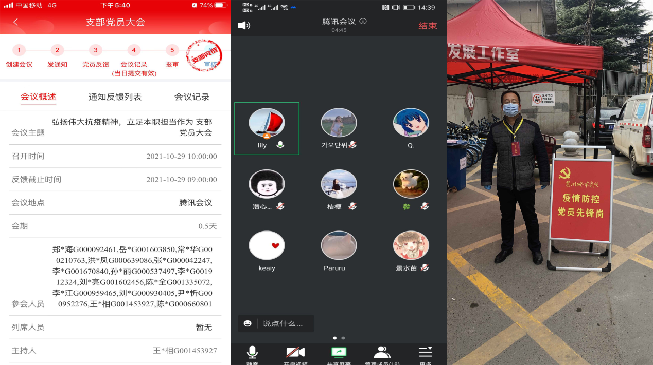 学院党委召开以“弘扬伟大抗疫精神”为主题的专题组织生活,学院全体党员干部敢于担当,坚守工作岗位,站在疫情防控一线,学生党员助力疫情防控工作一线,认真落实学校各部门决策部署,严格落实疫情防控责任,为坚决遏制疫情扩散,夺取疫情防控胜利贡献自己的力量,用行动淬炼党性修养,用行动践行使命担当,让党旗高高飘扬在防控疫情斗争第一线!