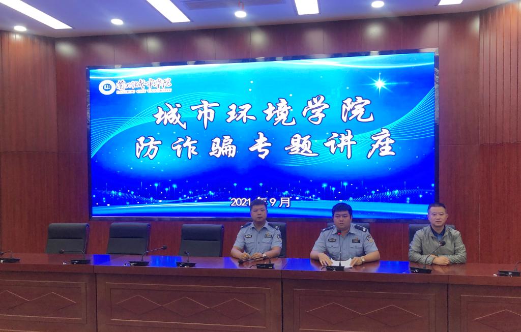 9月18日上午,学校保卫处与城市环境学院在校本部大学生活动中心共同举办“预防电信诈骗”专题讲座,城市环境学院2021级全体新生参加。