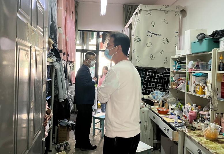 检查过程中,学院领导与同学们进行了亲切交流,对同学们的身体状况、思想状况、学习情况和生活近况进行了细致了解,并叮嘱同学们:疫情防控不可松懈,坚持每天测量体温,异常情况要第一时间报告;宿舍要多通风、勤洒扫,良好的宿舍环境是健康的前提;要严格遵守学校管控规定,合理安排好个人学习与生活。