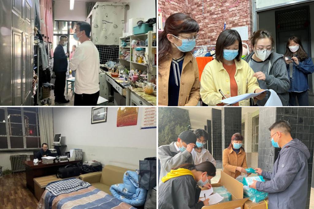 校园封控期间,学院负责人每天不定时走访学生宿舍,对同学们的健康状况、学习情况和思想及生活进行细致了解,叮嘱学生要做到“防疫为重,勤学守纪”,号召同学们积极适应疫情防控形式下的学习生活节奏,要切实做好自身防护,认真上好网课。