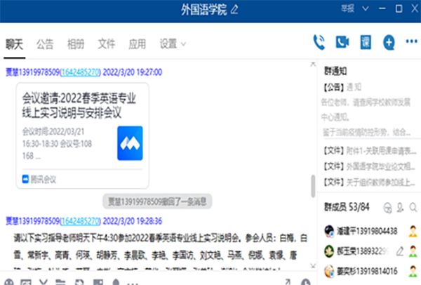 自3月14日学校实施封闭管理以来,外国语学院一方面全力做好疫情防控工作,另一方面有条不紊地推进线上教学及其它各项工作。3月14日、3月20日学院两次召开线上会议,向全体教职工传达学校关于疫情防控的指示精神,对学院疫情防控、线上教学、实习实践、毕业论文、学科竞赛、教学科研项目申报、岗位聘任等工作进行了细致的安排部署。
