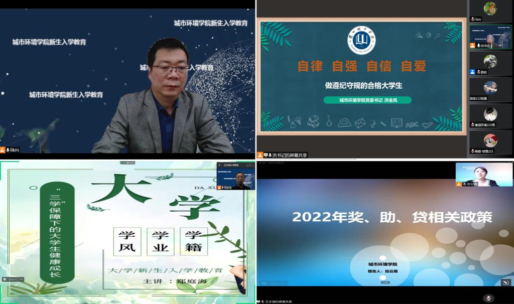 面对疫情下2022级新生入学线上进行的新变化,城市环境学院主动求变,切实增强责任意识,落实主体责任,充分发挥学院领导、系主任、专职辅导员、班主任等的教育引领作用,开好头、起好步,聚力为新生后续线上教学奠定良好基础。