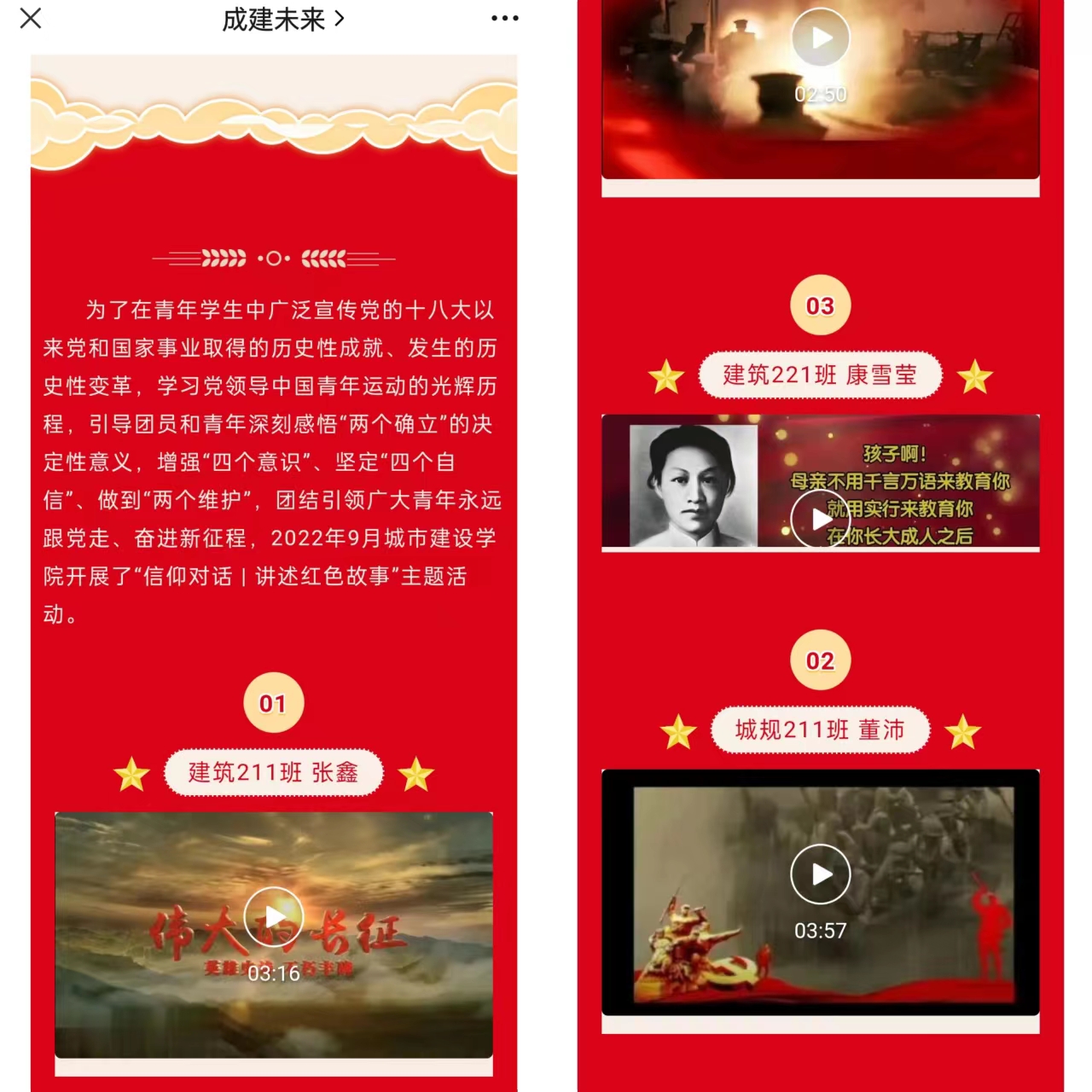 在做好学校分配学生管理工作的同时,学院也面向本院学生开展了一系列丰富多彩的活动。2022年学生作品展—“初成”,在老师们紧锣密鼓的筹办下,于学生解除封控管理时与同学们如约相见;“活力团支部”风采展示、“国旗在心中”云升旗仪式,“信仰对话,讲述红色故事”主题活动,学生作品云展览,红色建筑手绘大赛…多种多样的学生活动,充实着城市建设学院每位学生的心灵。