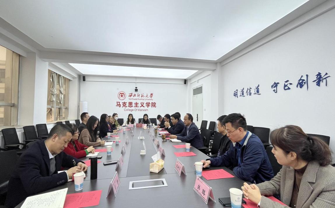 在交流座谈中,西北师范大学、兰州理工大学、甘肃政法大学马克思主义学院负责人分别介绍了学院建设、研究生培养、名师工作室建设、思想政治教育人才培养、课程设置、教师梯队建设、科研任务、思政专业核心课程设置、思政学科研究等方面的情况,并与beat365调研人员围绕学科建设、特色课程、实践教学、重点马院建设等进行了交流研讨。双方表示要加强交流学习,在教学研究、新入职教师培养等方面加强校际合作。