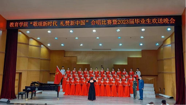 为丰富校园文化生活,营造积极、健康、向上的校园文化氛围,6月16日下午,教育学院举办了“歌颂新时代,礼赞新中国”合唱比赛暨2023届毕业生欢送晚会。