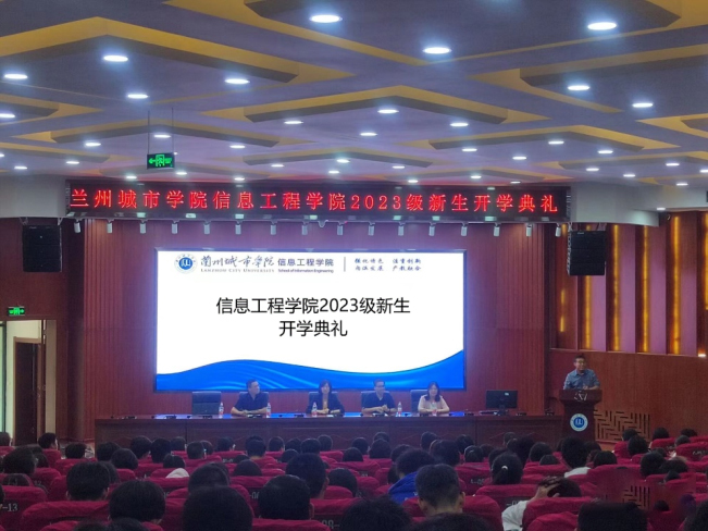 信息工程学院2023级新生开学典礼上,学院党委书记代表学院致辞,希望同学们可以做到心中有爱、眼里有光、胸中有梦、脚下有路,以积极向上的态度面对大学生活,实现既定的目标和理想、成就更优秀的自己。