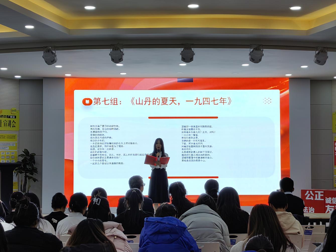 诵读会以“纪念路易•艾黎诞辰126周年”为主题,旨在通过朗诵的形式,让同学们更加深入地理解了艾黎精神的内涵和时代价值。比赛的21组选手们以铿锵有力的气势、充沛饱满的感情、自信大方地深情诵读《河曲》《乔治·何克——为山丹学,校奉献一切的人》《教育在中国》等路易·艾黎先生的作品,深刻感受艾黎先生的高尚品德、卓越才华和博大情怀,赢得了在场师生的阵阵掌声。