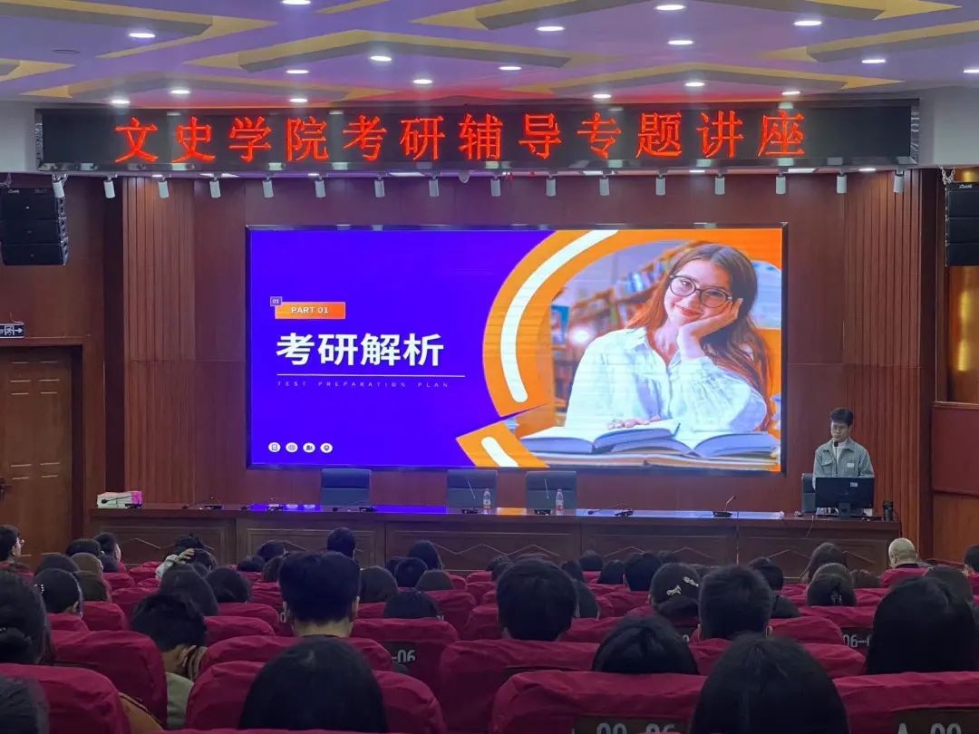 为帮助有考研意愿的学生掌握当前考研新形势,明确考研目标,激发学生考研升学的积极性和自信心,3月20日,文史学院组织开展考研辅导专题讲座,邀请文都教育考研规划巡讲师何志玺为学院2022级、2023级学生作《研路相伴 展望未来》专题讲座。本次讲座由文史学院党委负责人主持。