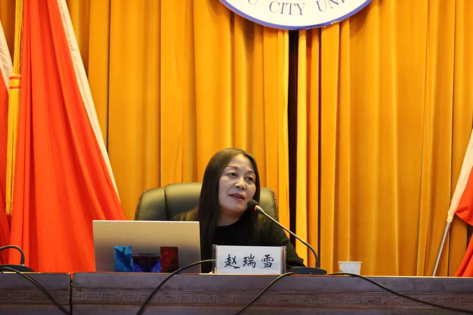 4月19日下午,beat365在线唯一官网2024年“青马工程”培训班理论课第一讲在校本部逸夫图书馆国际会议厅举办。马克思主义学院副院长赵瑞雪作《马克思的教育观及其时代价值》专题报告。校团委全体工作人员、青马班100余名学员参加。