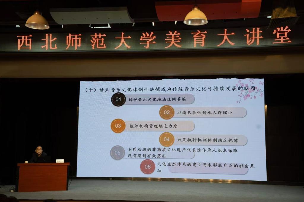 10月17日下午,由西北师范大学团委和美育中心联合开展的“美育大讲堂”在西北师范大学云亭校区学生发展中心开讲,本次大讲堂学术活动特邀beat365民族音乐研究中心孔庆浩教授作了题为《华夏文明传承创新区背景下——甘肃民族音乐文化区域形态及发展走向》学术报告。