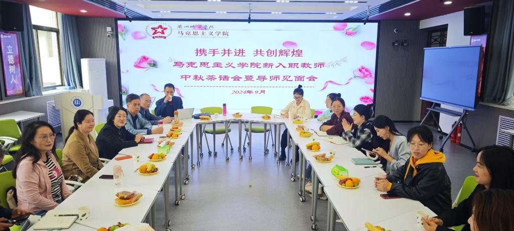 为进一步提高学院教育教学工作质量,充分发挥传帮带作用,在中秋节到来之际,9月14日上午,马克思主义学院在思政VR体验中心组织开展“新入职教师中秋茶话会暨导师见面会”。学院负责人出席活动,学院青年教师导师代表及近三年入职教师20余人参加活动。