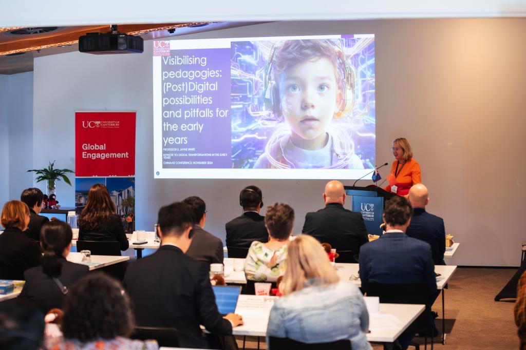 本届会议旨在落实中国-新西兰教育联合工作组磋商机制会议精神和两国教育部《中华人民共和国教育部与新西兰教育部关于教育与培训的合作安排》有关工作内容,打造中新学前教育机制化交流合作平台,持续推进双方学前教育合作和人文交流。本届会议主题为“学前教育的数字化转型”,中国和新西兰的专家、园长、研发人员紧紧围绕中新两国学前教育数字化教学相关政策及实践、学前教育的数字化转型、人工智能在学前教育教师工作中的应用及潜力、数字技术在学前教育评价中的应用、家园沟通与协作中的数字化转型等专题做了学术报告和交流研讨。同期,在新西兰参会的教师还拜访克赖斯特彻奇市议会,访问坎特伯雷大学、当地幼儿园和中小学。