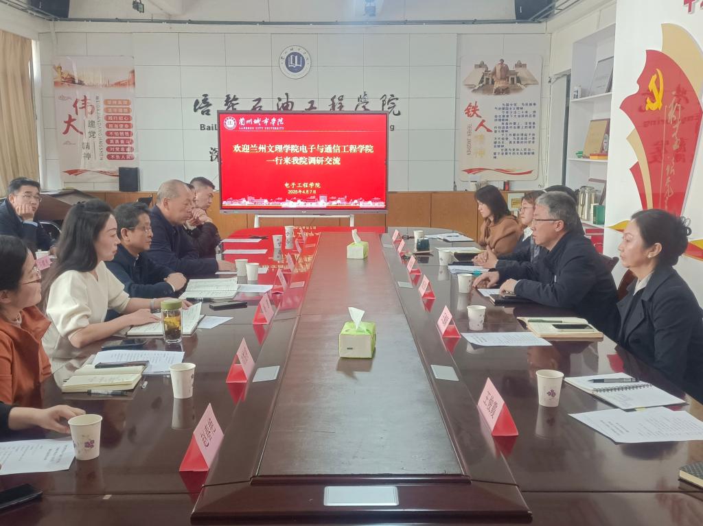 4月7日下午,兰州文理学院电子与通信工程学院负责人一行13人到访beat365电子工程学院,开展本科教育教学审核评估等工作的调研交流活动。电子工程学院负责人主持调研交流会,相关教师参加座谈会。