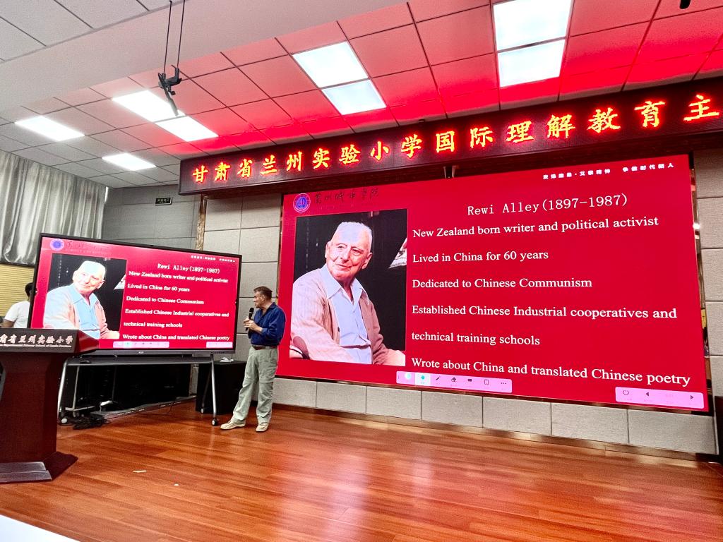 活动中,新西兰外教Colin McCulloch(科林·麦克库洛奇)深情讲述了路易·艾黎先生远渡重洋、扎根中国西北、创办培黎学校的感人事迹。面对小学生群体,他因材施教,先以艾黎读小学时因顽皮而受到惩戒的故事为切入点,拉近了学生和艾黎的距离。他通过珍贵的历史影像和生动的故事,诠释了艾黎“教育无国界、奉献无疆界”的精神境界。其无私奉献品格与教育情怀至今仍熠熠生辉,深深打动了在场师生。