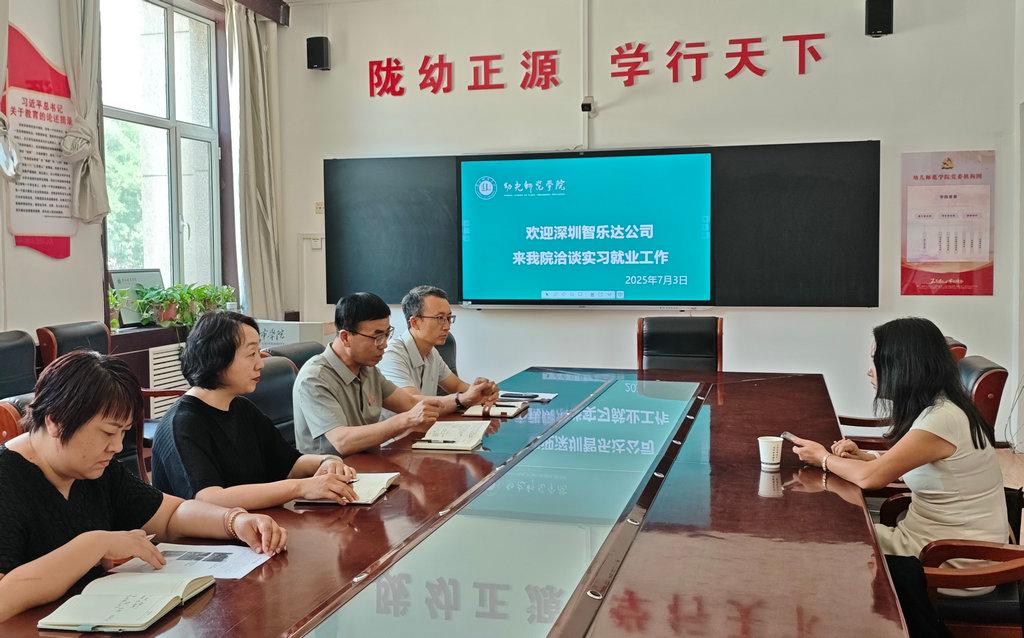 7月3日下午,智乐达教育投资服务(深圳)有限公司校长吴彩金来幼儿师范学院开展校企合作洽谈,学院班子成员参加座谈交流,会议由学院相关负责人主持。
