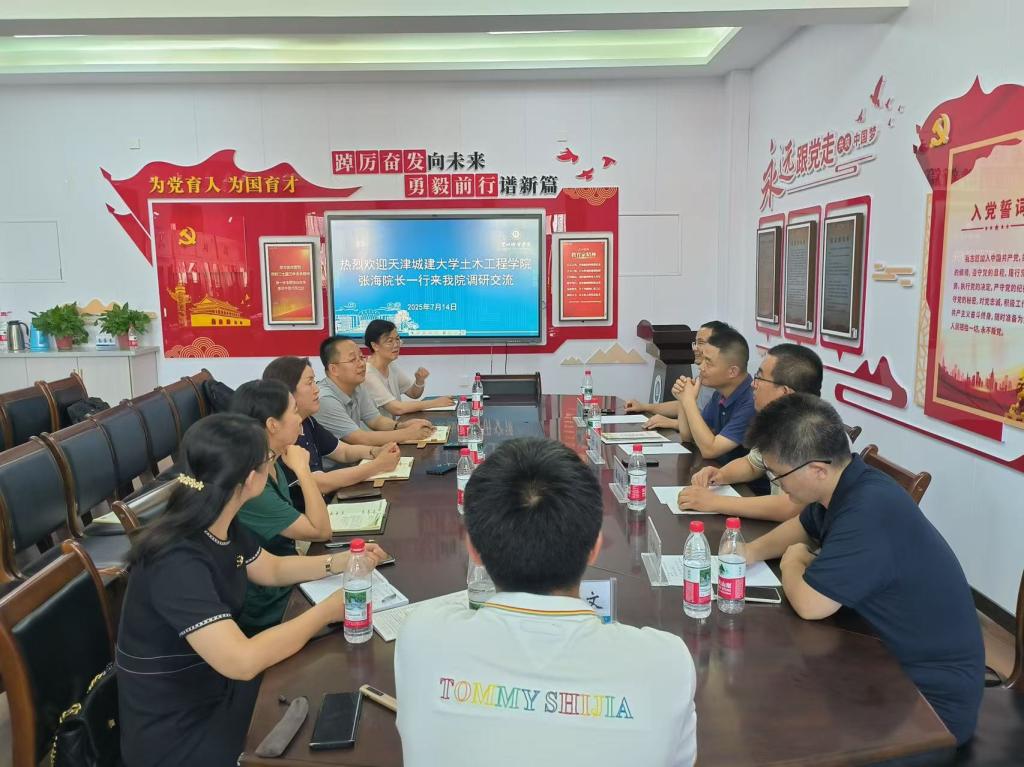 7月14日,天津城建大学土木工程学院负责人一行来校进行调研座谈。环境与城市建设学院全体班子成员、相关教师参加座谈会。