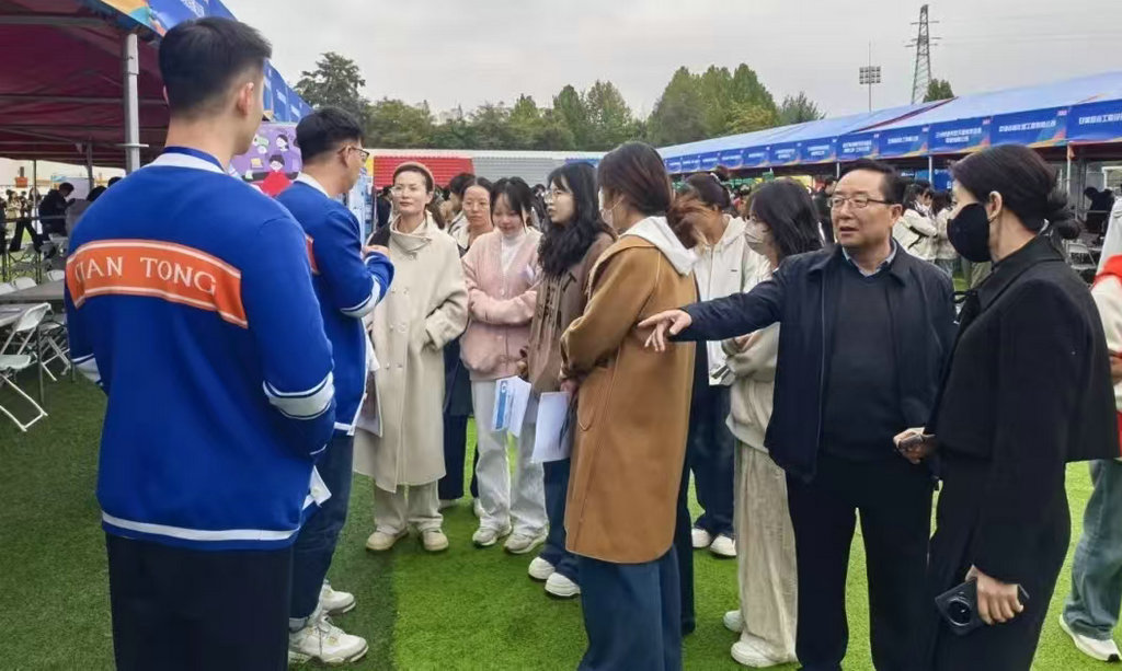 座谈结束后,与会人员共同前往学校2026届毕业生秋季校园双选会现场,与毕业生进行面对面交流,现场解答求职疑问,接收应聘简历。