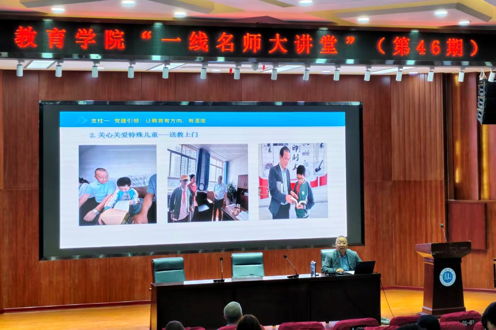10月30日晚,教育学院在大学生活动中心举办第46期“一线名师大讲堂”活动。西固区达川学区主任、岔路小学校长蒋宜吉应邀作《新时代背景下的小学教师素养与能力塑造》专题讲座。教育学院负责人主持活动,小学教育、应用心理学、教育技术学专业400余名学生参加。