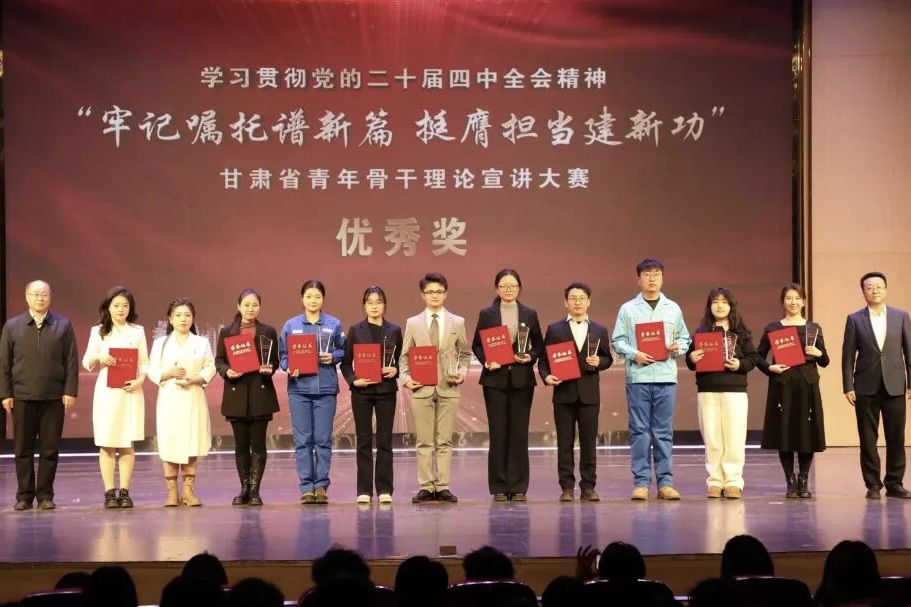 12月31日,由共青团甘肃省委主办的学习贯彻党的二十届四中全会精神“牢记嘱托谱新篇 挺膺担当建新功”甘肃省青年骨干理论宣讲大赛宣讲展示暨颁奖仪式在西北师范大学举行,校团委组织经济管理学院30余名团员青年代表参加活动。