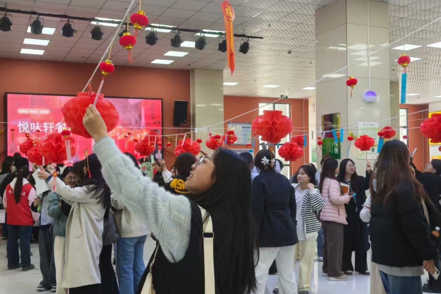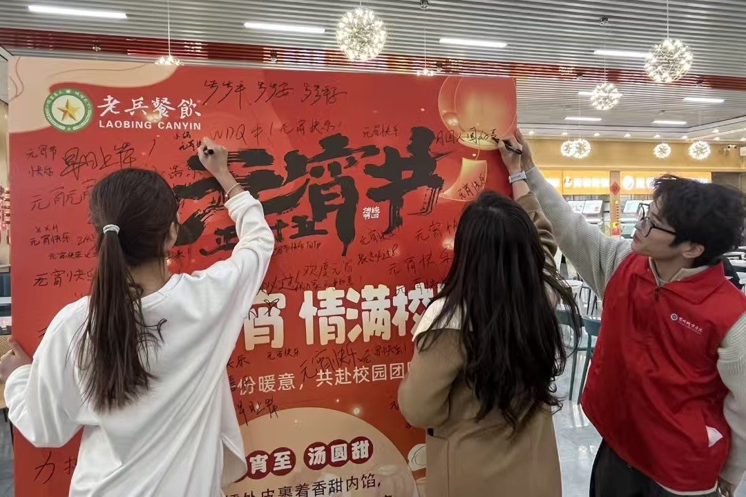 活动现场悬挂灯笼彩带,营造出浓厚的节日氛围。食堂工作人员为师生免费发放元宵,大家围坐品尝,共话节日习俗,感受团圆寓意。猜灯谜环节中,师生们驻足思考、相互交流,在趣味互动中体验传统文化的魅力。
