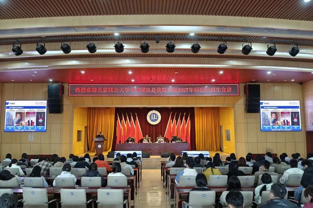 3月19日,北京联合大学生物化学工程学院环境科学与工程硕士点负责人程艳玲教授、生物工程专业负责人周成教授应邀来校,与环境与城市建设学院联合举办2027年研究生招生宣讲暨2026年研究生调剂政策解读活动。学院相关工作负责人、2026届毕业班班主任代表、辅导员及环境工程、土木工程专业100余名学生参加活动。