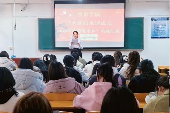 为深入贯彻落实习近平总书记关于青年工作的重要思想,引导广大团员青年在社会实践中坚定理想信念、厚植家国情怀,进一步激发青年学子投身基层、服务家乡的责任感与使命感,近日,校团委以“实践归来话成长”为主题,组织各学院开展了形式多样、内容丰富的2026年寒假“返家乡”社会实践成果分享活动。