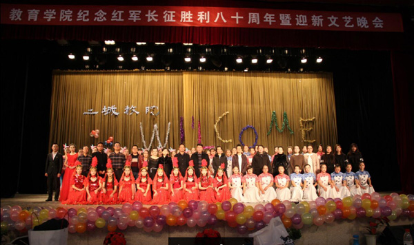 11月25日下午,教育学院纪念红军长征胜利80周年暨迎新文艺演出在校本部大礼堂举行,该学院800余名学生观看了演出。演出开始前,学院负责人为在第五届全国小学教育专业师范生小学语文片段教学竞赛中获得一等奖的张靓同学和获得二等奖的王丹同学以及指导优秀指导老师刘洁副教授颁发了获奖证书。