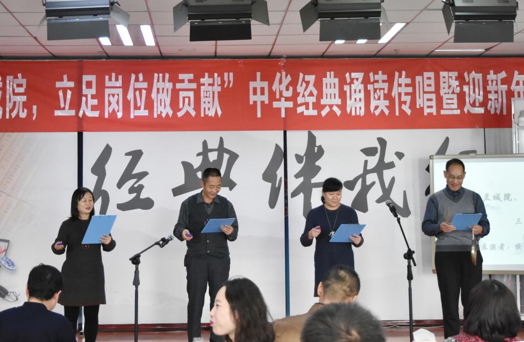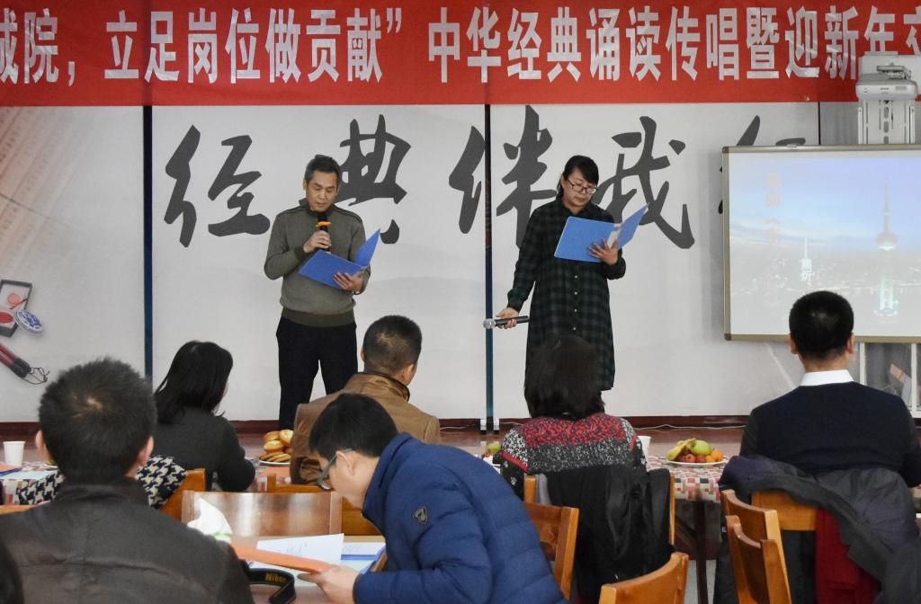 12月23日中午,校工会机关第三分会中华经典诵读传唱暨迎新年交流分享会在逸夫图书馆博雅讲堂举行,机关党委和校工会教职工女声合唱团受邀参加。来自党委学生工作部(学生工作处)、党委宣传部、团委、招生就业处、工会、张芝书法院等机关第三分会所属部门的44名教职工参加了分享会。