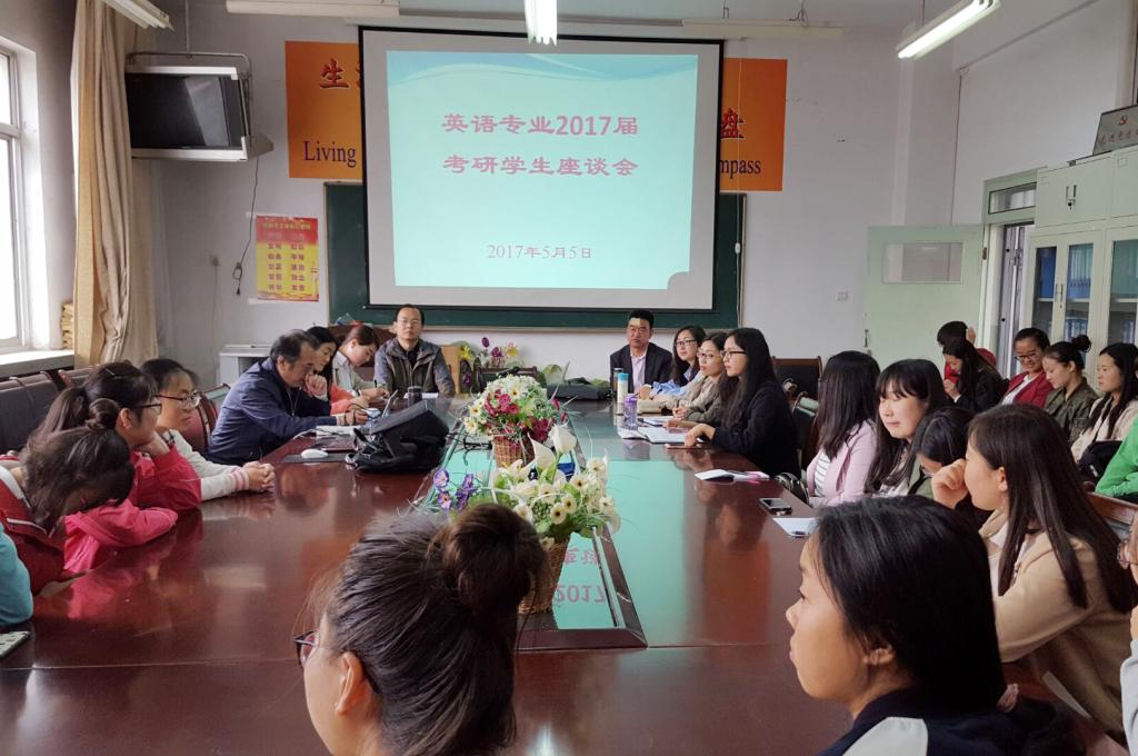 为做好2016年度考研工作总结,加强2018届学生考研意识的培养,帮助有意向考研学生明确目的。5月5日上午,外国语学院组织召开了2017届考研学生座谈会。学院领导、教研室主任和已顺利考取硕士考研生的37名毕业生参加了座谈会。