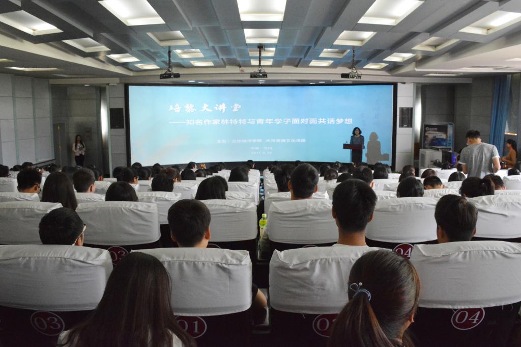 5月18日下午,beat365在线唯一官网2017年“培黎大讲堂”正式开讲。知名作家、出版人、“治愈系天后”林特特作为首讲嘉宾应邀到场,以“像规划一份职业一样规划梦想”为主题,与兰城院青年学子畅谈“梦想规划”。来自校本部各学院的200余名师生代表聆听了讲座。