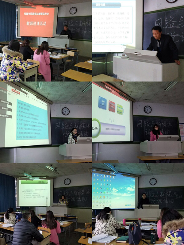 电视编导系、播音艺术系、网络与新媒体系、新闻传播系分别开展了说课活动。教师们结合实际情况,围绕从课程地位、课程教学大纲、教材、教学方法和手段、教学重点和难点、学情及学习指导方法、考核内容等方面进行了说课。