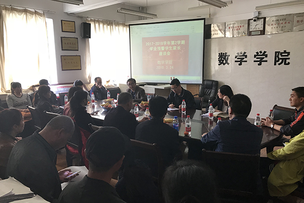 为加强学院与家长的联系,帮助学业预警学生顺利完成学业, 3月24日下午,数学学院在4408会议室召开学业预警学生家长座谈会。数学学院党委书记张效贤,副院长李永军、苏旺辉,全体班主任、辅导员和预警学生家长参加了座谈会。