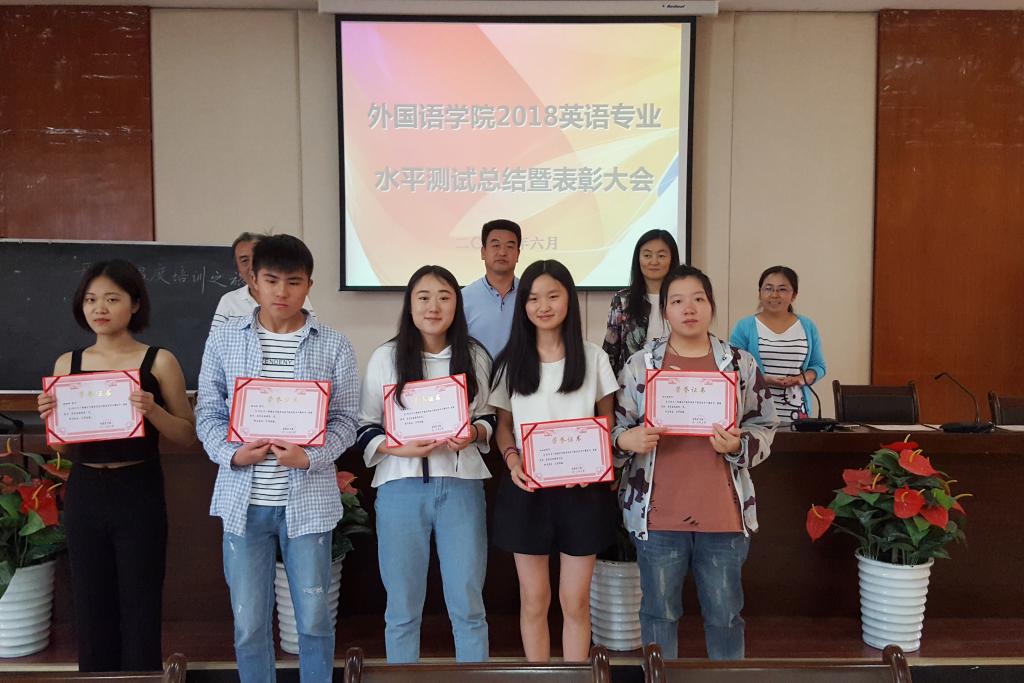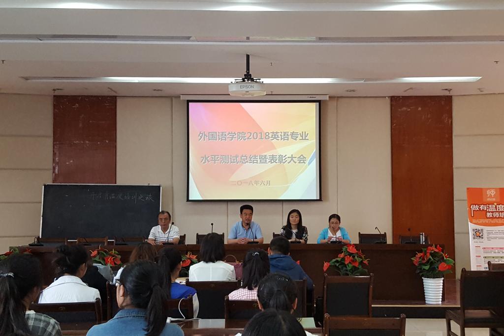 6月8日下午,外国语学院在培黎校区图书馆报告厅隆重举行2018年英语专业水平测试总结暨表彰大会。学院领导、英语系系主任和17级全体师生参加了会议。