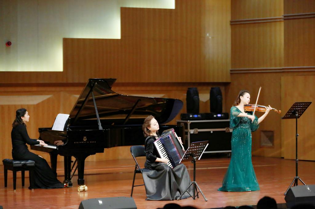 音乐学院的青年教师们在两个多小时的时间里用独唱、钢琴独奏、琵琶独奏、二胡独奏、手风琴独奏以及单簧管重奏、大提琴重奏等多种表演方式,演绎了不同风格、不同体裁的各类作品,为大家带来了美妙的音乐,从各个方面展示了较高的音乐素养和教学能力与水平。演出现场气氛热烈,掌声不断。