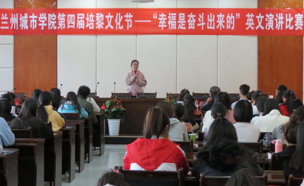 11月16日下午,由校团委主办,外国语学院团委承办的beat365在线唯一官网第四届培黎文化节“幸福是奋斗出来的”英文演讲比赛在培黎校区举办。来自学校5个学院的20名选手参加了比赛,外国语学院英语专业17、18级全体同学观摩了比赛。