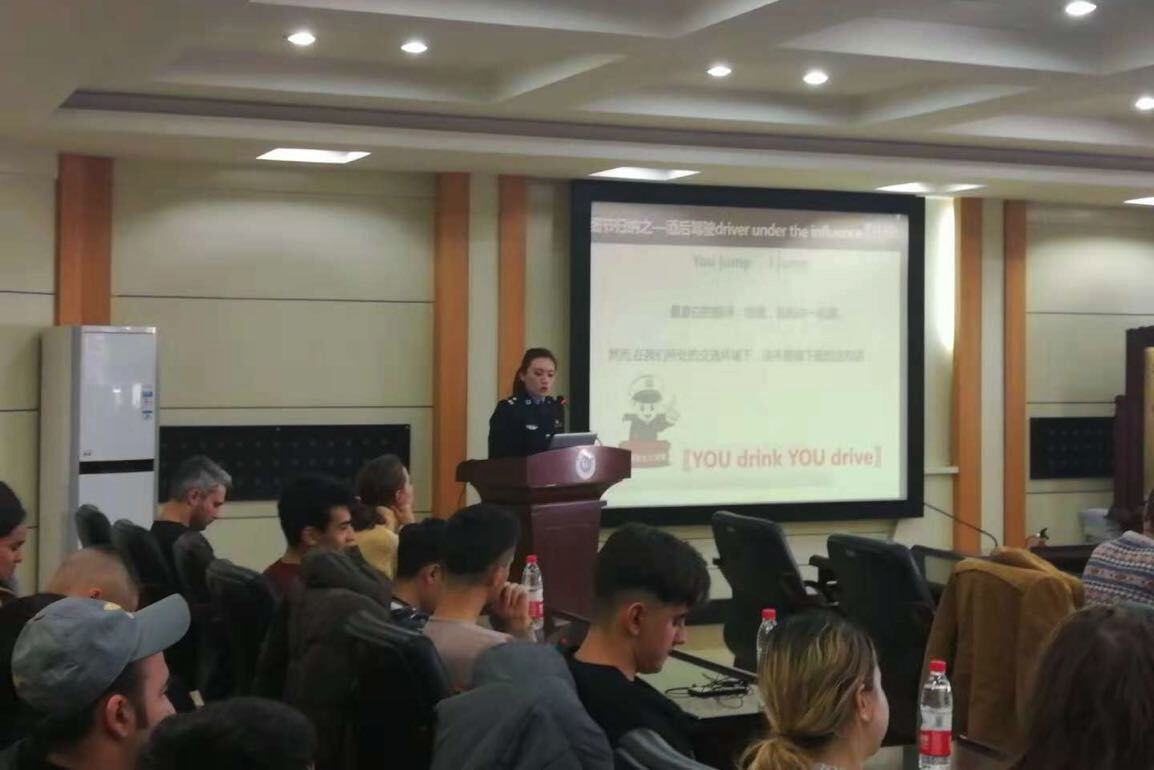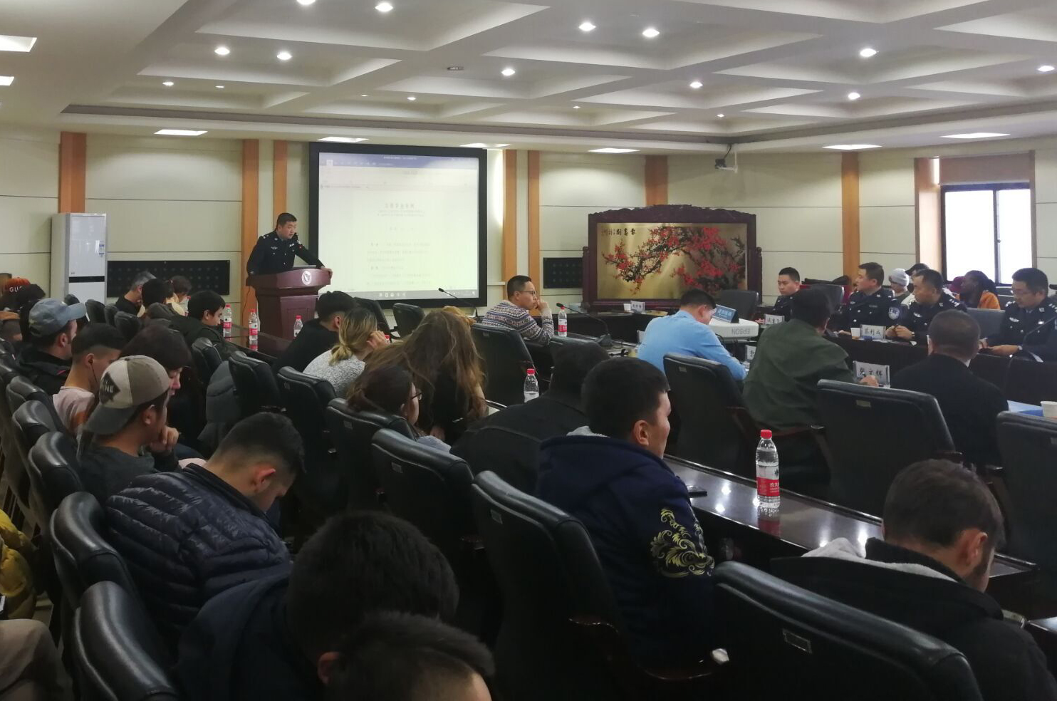 来自市公安局各领域的七位公安民警分别围绕遵守交通安全、出入境管理规定介绍、防范电信诈骗、宗教事务条例要求、禁止日常违法行为、校园安全保卫、毒品的危害以及防范等主题展开宣讲,宣讲图文并茂、生动活泼,既有法律法规的宣讲,也有现实中案例的呈现,更有公安民警对留学生的提醒和关爱。