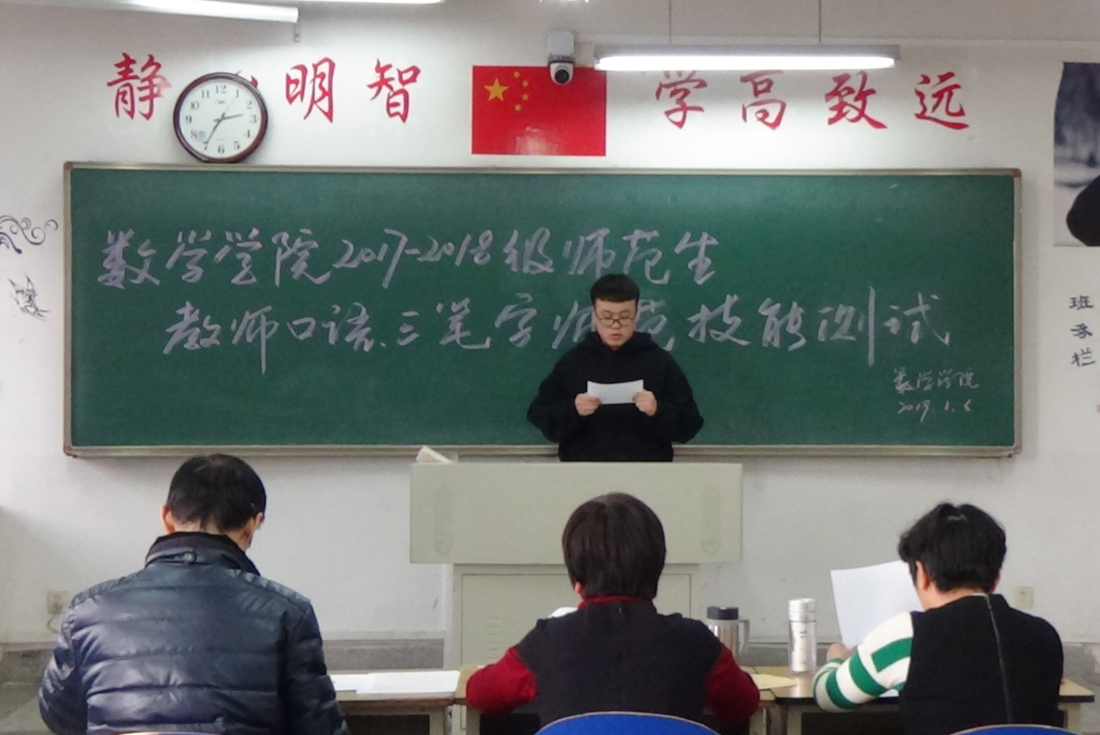 为了迎接数学与应用数学专业师范认证工作,加强师范生技能训练,按照《中学教师专业标准(试行)》《卓越教师培养计划2.0》和《beat365在线唯一官网数学学院数学与应用数学专业人才培养方案(2017版)》《beat365在线唯一官网数学与应用数学专业学生师范技能训练与改革实施办法》要求,1月6日,数学学院举办了2017、2018级师范生教师口语、三笔字师范技能测试。
