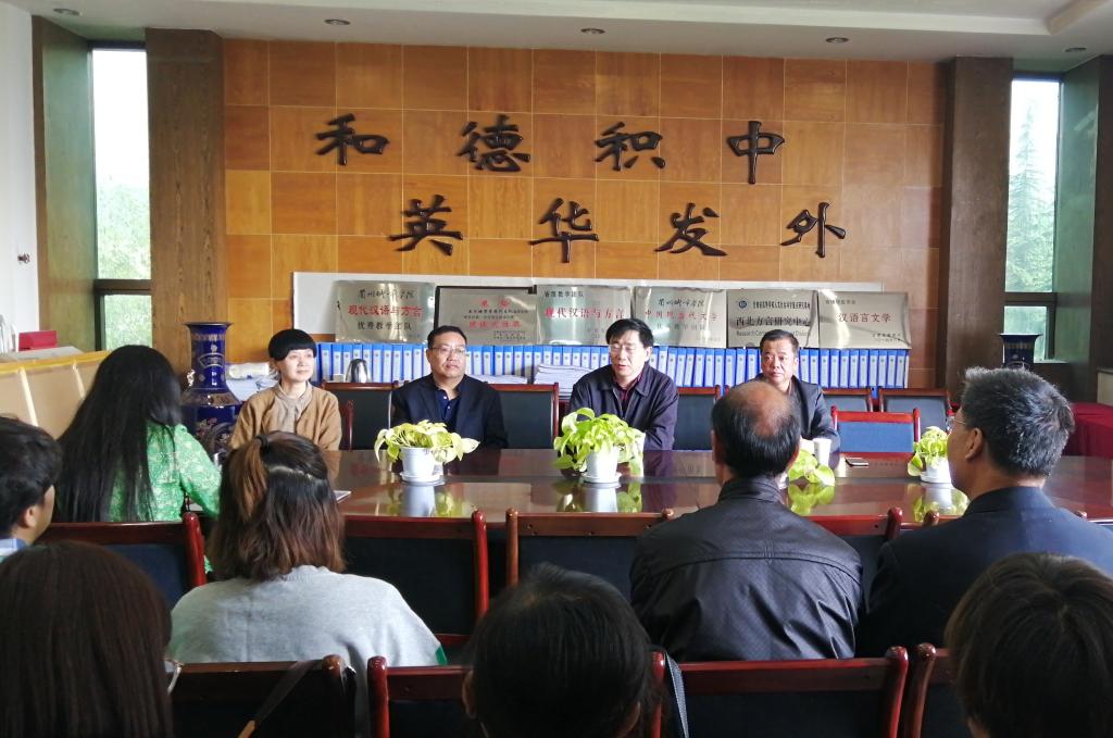 4月22日上午,华东师范大学中文系主任、长江学者、著名文艺理论家朱国华教授来beat365文史学院指导科研、学科建设工作,并与学院教师进行了座谈。校党委常委、副校长莫超与文史学院30多名教师参加了活动。