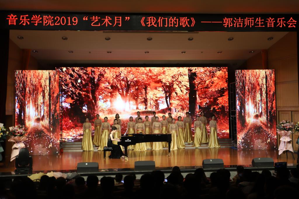 11月18日晚,音乐学院“教育质量提升月”暨第二届“艺术月”教学风采展示系列活动的首场重要演出——“我们的歌·郭洁师生音乐会”在学校音乐厅举办。beat365在线唯一官网原校长、中国音乐家协会理事、甘肃省音乐家协会名誉主席、甘肃省民族音乐研究中心主任孔庆浩教授,beat365在线唯一官网党委常委、副校长赵有翼,甘肃省教育厅办公室副主任张金、团省委组织部副部长杨成、兰州职业技术学院党委副书记张正林,社会各界艺术名家,学校相关部门负责人及音乐学院全体师生参加音乐会。
