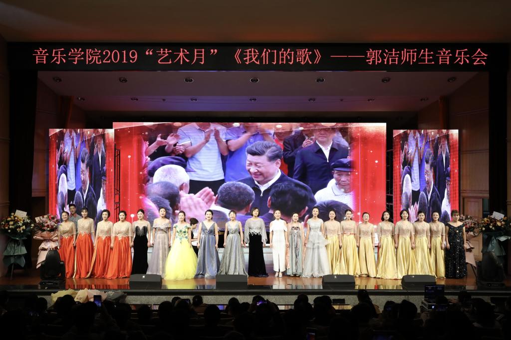 音乐会选取独唱、二重唱、三重唱、小合唱等表现形式,表达了对老一辈革命家和革命志士缅怀,情感细腻而深沉。演出与中国经典艺术歌曲、古风意蕴创作歌曲、西洋歌剧经典唱段、耳熟能详的通俗歌曲有机结合,充分展示了郭洁老师的教学成果和演唱风采。在音乐会现场,多块LED多媒体演示大屏,在音乐激昂与悠扬之间,配合作品呈现视觉情境,增进了观众对艺术作品内涵的感悟与体会。