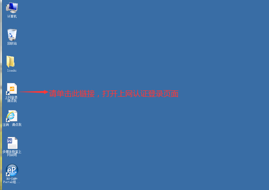 2.请双击下图所示的“上网登录请点我”链接,打开上网认证页面。